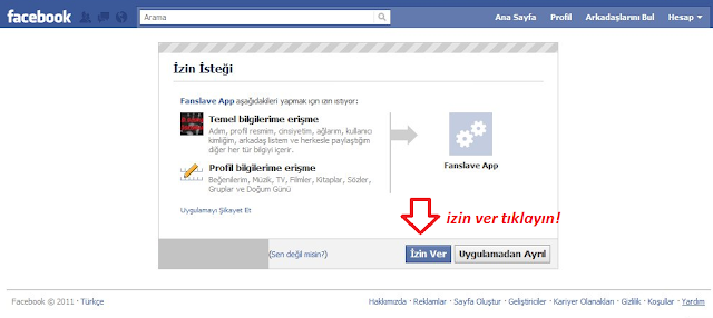 Facebook connect'e tıkladıktan sonra sizden facebook hesabınıza bağlanmak için izin isteyecektir. Burada uygulamaya izin ver e tıklıyorsunuz.