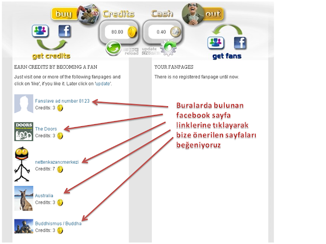 Fanslave.com'un size önerdiği tüm sayfaları bu şekilde tek tek beğenerek facebook tan para kazanmış olacaksınız.Herkesin her gün belli bir limiti var. Hergün fanslave hesabınıza giriş yaptığınızda sizlere önerdiği sayfaları göreceksiniz.